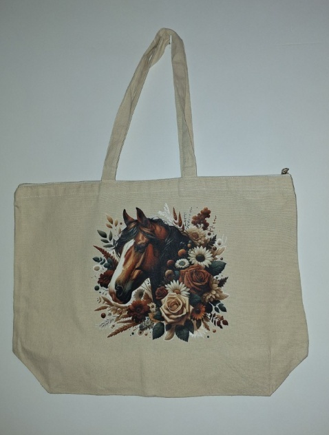 Torba bawełniana z zamkiem z nadrukiem przedstawiającym konia w jesiennych barwach.